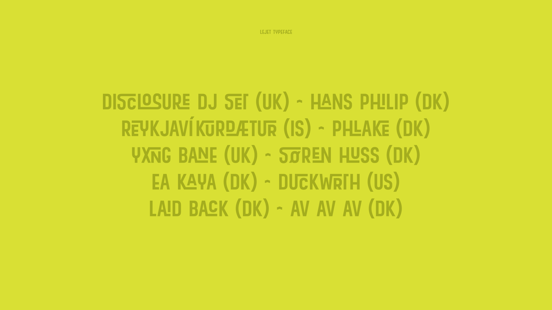 Musik i Lejet is a festival between forrest and sea on the northcoast of Zealand, Denmark.We created a typeface for them that was used from 2018-2023.In 2024 we did photography for their Social Media.
