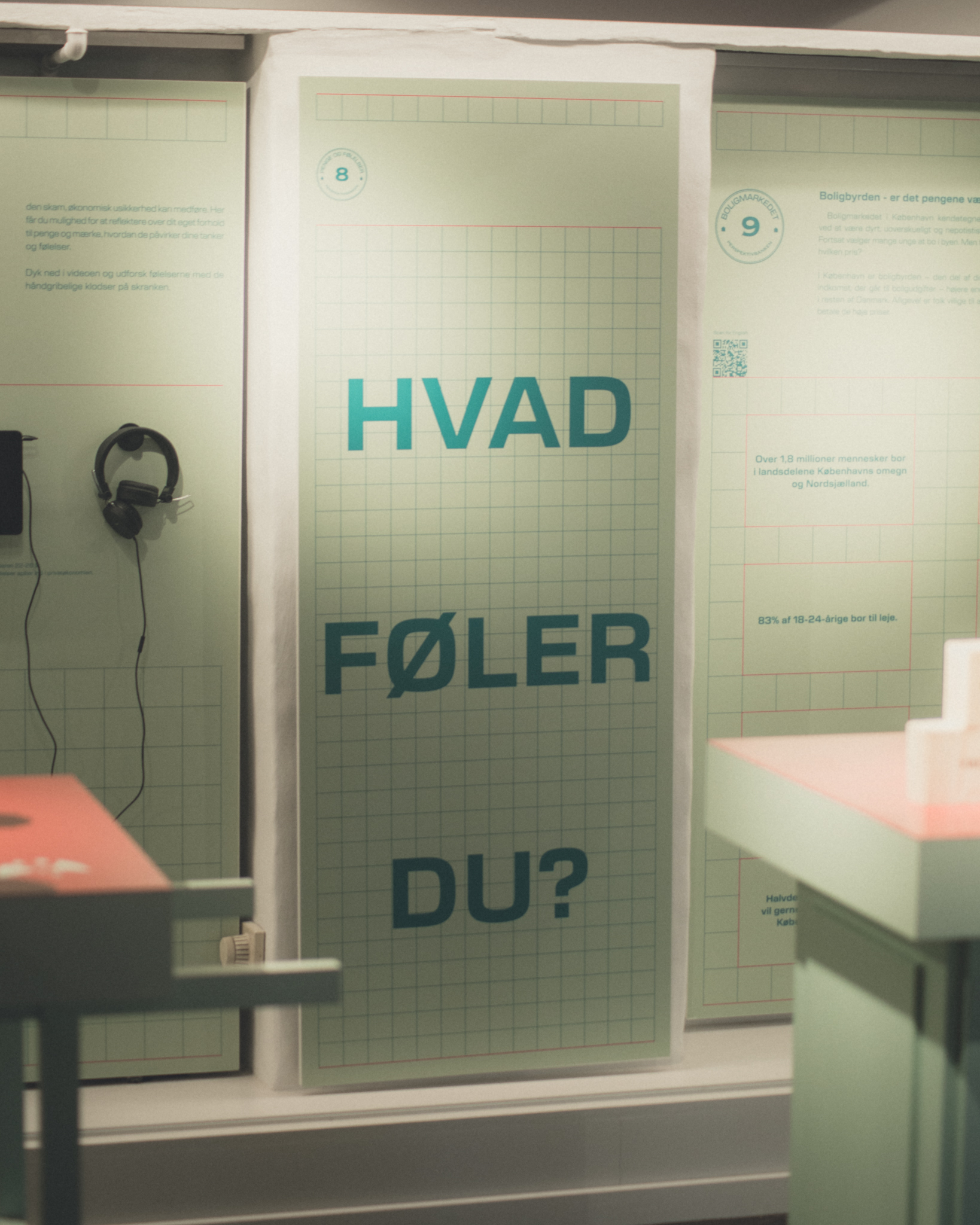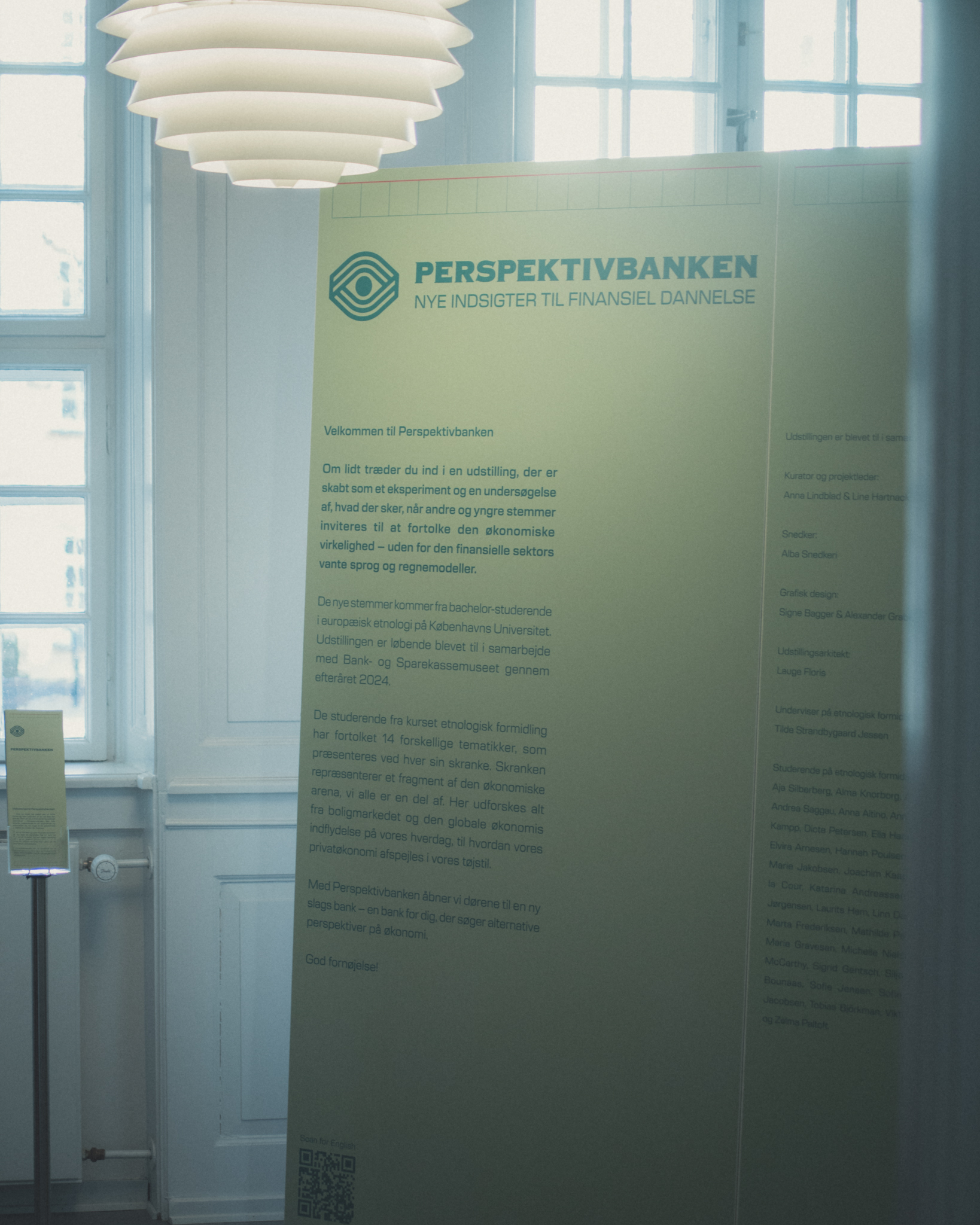 Perspektivbanken was an exhibition that ran in 2025 at the Bank & Sparekasse museum in Copenhagen. It's an exhibition created with ethnology students of the Copenhagen University, with the aim of making banking more accesible to young adults. We had the pleasure of working with the students and the museum to create the visual identity and all the different printable matter.